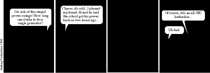 For some reason, I'd always read this strip that both of the comments about Al were spoken by the same person. Not that it really matters, it's just a little something I just noticed.