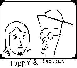 Hippie appears here in close to his final version, but Black Guy is still kind of... cartoony.