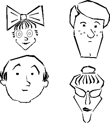 Early artwork for several of the supporting characters. The face on the bottom left was originally designed to be a university administrator, but ended up being the priest.