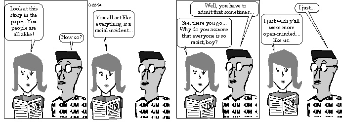 We drew this one in the first couple of months of the daily strip, but never ran it, fearing at the time that it might be too offensive (I believe on the advice of our friends). Regardless, it gave us a bonus "banned strip" for our first collection.
