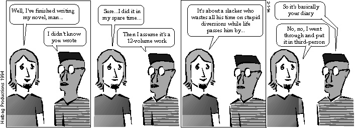 This was the first in a series of four strips created especially for the web site sometime between the end of the daily strip and the beginning of the weekly strip.