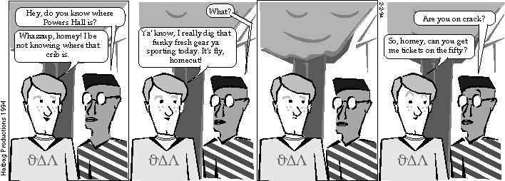Frat Guy's shirt, by the way, bears the Greek letter equivalents of JDL, the name we were writing the strip under.