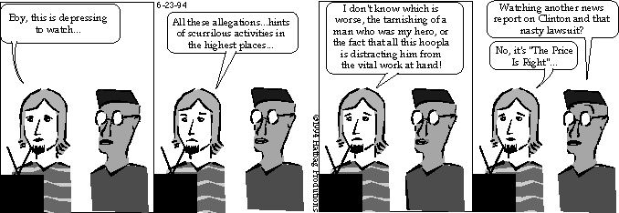 There really was a big scandal around Bob Barker at the time of this strip, though we have no idea what it was now.