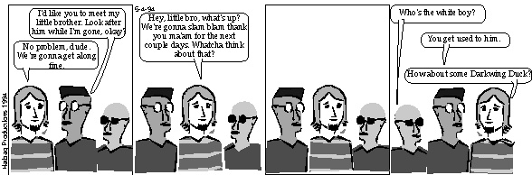 This strip, and the following ones in the "little black guy" series were lost after they were published, and so were not in the print collection and have not been seen in five years.